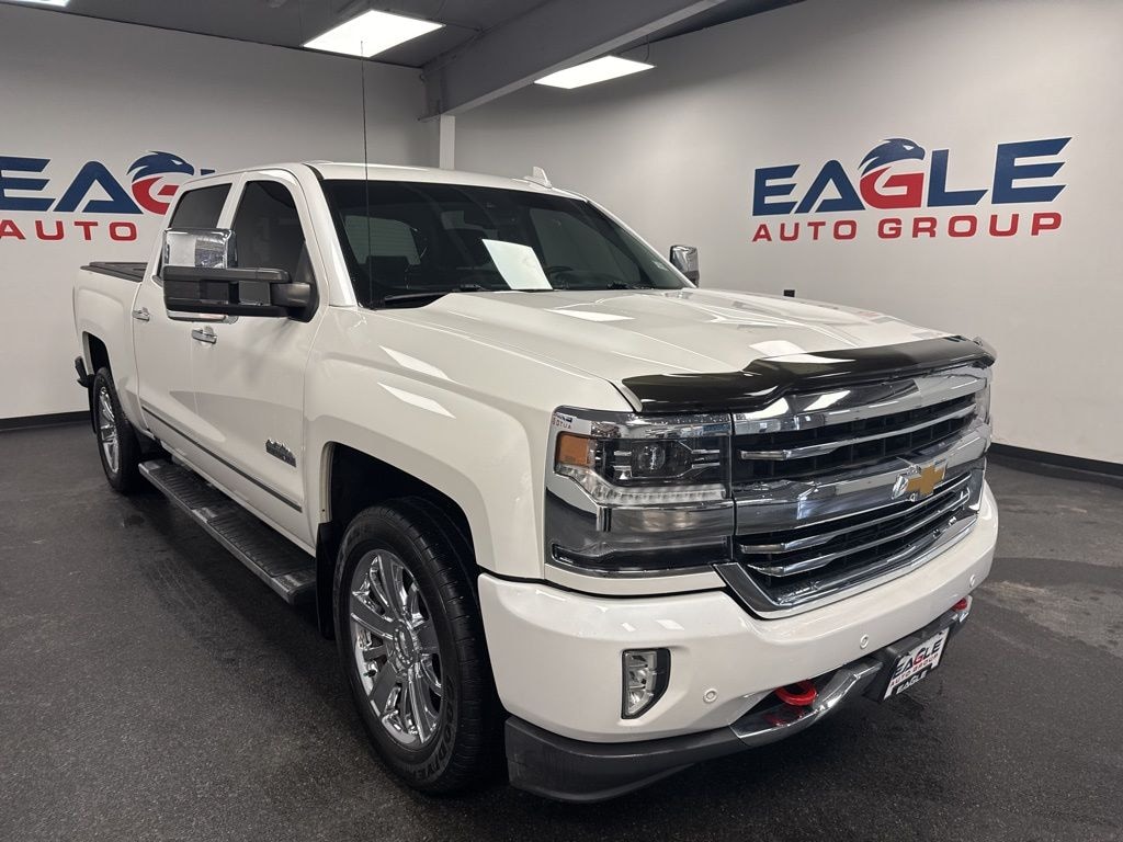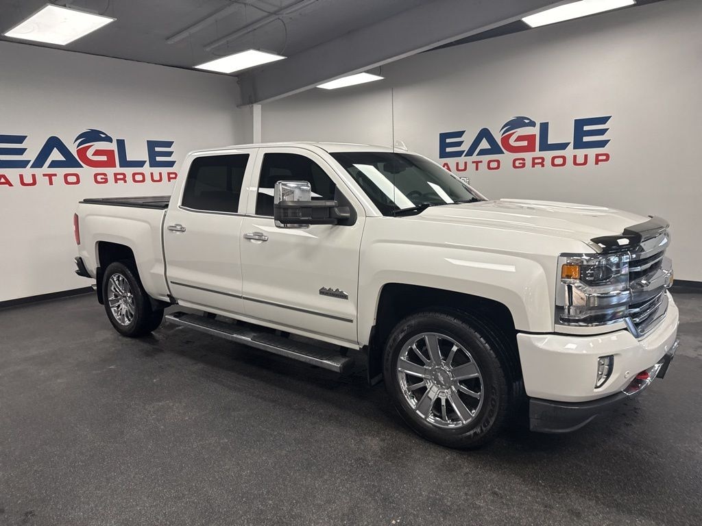 Clean CARFAX. White 2017 Chevrolet Silverado 1500 High Country 4WD 8-Speed Automatic with Overdrive EcoTec3 6.2L V8 4X4, Navigation, Heated Seats, Leather Seats, Cooled Seats, Heated Seating, Power Windows & Locks, Power Seat, Dual Climate Control, Alloy Wheels, Remote Start, Cruise Control, BlueTooth Compatible, Reverse Back up Camera, 8-Speed Automatic with Overdrive, 4WD, Leather, Enhanced Driver Alert Package, Forward Collision Alert, IntelliBeam Automatic High Beam On/Off Headlight, Lane Keep Assist, Low Speed Forward Automatic Braking, Navigation System, Trailering Package.