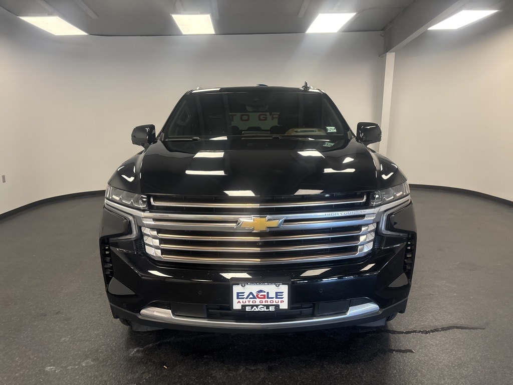 CARFAX One-Owner. Black 2023 Chevrolet Tahoe High Country 4WD 10-Speed Automatic with Overdrive EcoTec3 6.2L V8 4X4, Navigation, Heated Seats, Leather Seats, Cooled Seats, Remote Start, Cruise Control, BlueTooth Compatible, Reverse Back up Camera, 4WD, Jet Black/Mocha Leather, 15" Diagonal Multi-Color Head-Up Display, 1st & 2nd Row Color-Keyed Carpeted Floor Mats, 2-Speed Active Electronic AutoTrac Transfer Case, 3rd Row 60/40 Power-Folding Split-Bench Seat, Advanced Trailering Package, Bose 10-Speaker Centerpoint Surround Audio Sys Ft, Bright Front & Rear Door Sill Plates, Chrome Door Handles w/Body-Color Strip, Color-Keyed Carpeting Floor Covering, Driver & Front Outboard Passenger Airbags, Dual Exhaust System, Enhanced Automatic Emergency Braking, Enhanced Driver Information Center, Extra Capacity Cooling System, Floor Console, Hands-Free Rear Power Programmable Liftgate, HD Surround Vision, Heated 2nd Row Outboard Seats, Heated Steering Wheel, Hill Descent Control, Hitch Guidance w/Hitch View, Infotainment Display, Inside Rearview Auto-Dimming Rear Camera Mirror, Integrated Trailer Brake Controller, Lane Change Alert w/Side Blind Zone Alert, LED Daytime Running Lamps, License Plate Front Mounting Package, Max Trailering Package, Memory Settings, Navigation System, Outside Heated Power-Adjustable Mirrors, Power Release 2nd Row Bucket Seats, Power Tilt & Telescopic Steering Column, Preferred Equipment Group 3LZ, Rear Camera Mirror Washer, Rear Cross Traffic Alert, Rear Pedestrian Alert, Remote Start, Safety Alert Seat, SiriusXM Radio w/360L, Smart Trailer Integration Indicator, Trailer Side Blind Zone Alert, Universal Home Remote, Wireless Charging, Wrapped Steering Wheel.