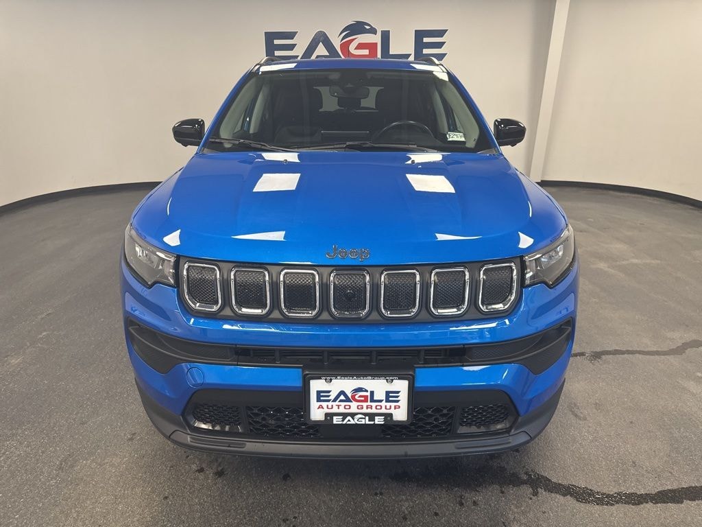 CARFAX One-Owner. Clean CARFAX. Laser Blue Pearlcoat 2022 Jeep Compass Latitude 4WD 9-Speed 948TE Automatic 2.4L I4 4X4, Remote Start, Cruise Control, BlueTooth Compatible, Reverse Back up Camera, 4WD, 115V Auxiliary Power Outlet, 2nd Row USB Type A/C Charge Only, 360 Surround View Camera System, Adaptive Cruise Control w/Stop & Go, Air Conditioning ATC w/Dual Zone Control, All-Season Floor Mats, Auto-Dimming Rear-View Mirror, Convenience Group, Driver Assistance Group, Foot Activated Open 'N Go Liftgate, Heated Front Seats, Heated Steering Wheel, Humidity Sensor, Leather Wrapped Steering Wheel, P&P Park & Unpark Assist System, ParkSense Fr/Rr Park Assist System, Power Adjust 8-Way Driver Seat, Power Liftgate, Premium LED Fog Lamps, Quick Order Package 2GJ, Rain Sensitive/Intermittent Wipers, Remote Start System, Reversible Carpet/Vinyl Cargo Mat, Security Alarm, Universal Garage Door Opener, Vehicle Information Center, Windshield Wiper De-Icer, Wireless Charging Pad.